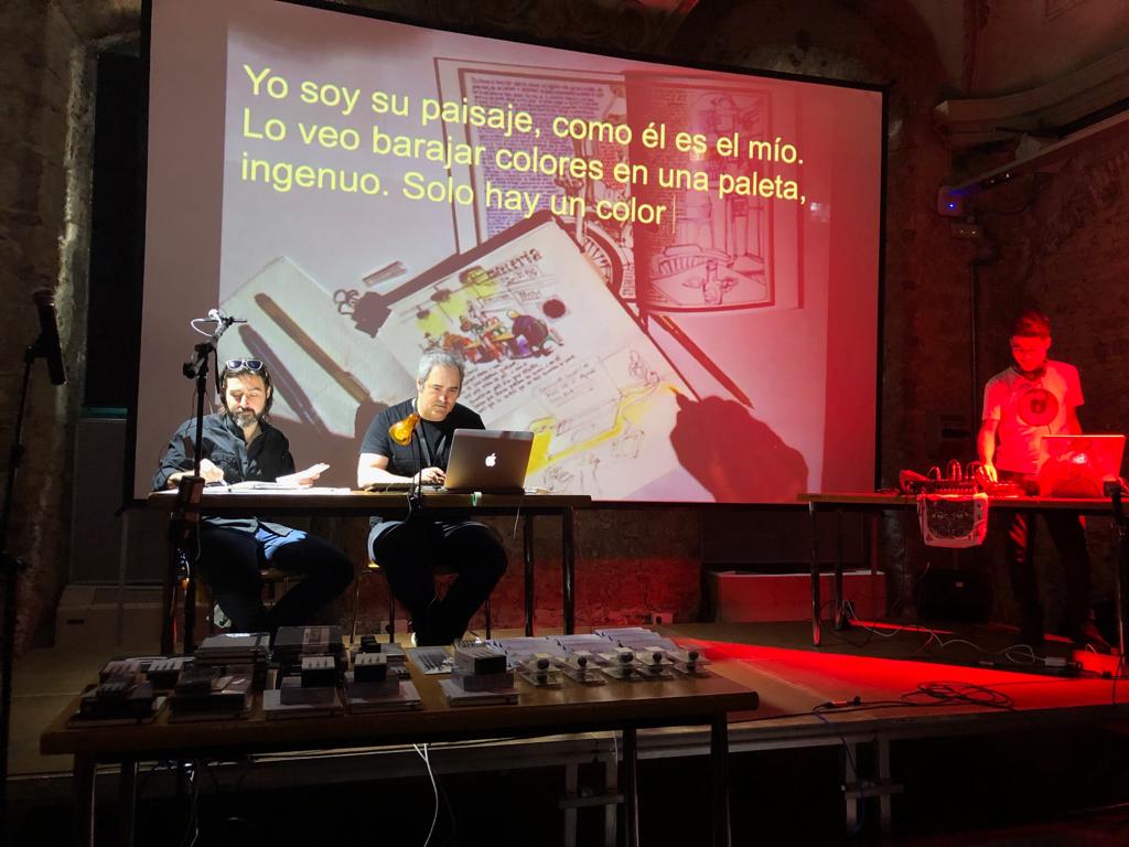 Sobre el escenario, con una gran pantalla para proyectar los dibujos, Marcos Xalabarder y Marc Massana fueron dando paso a los participantes, que subieron a compartir sus dibujos y a leer sus escritos. Amenizado por la música del DJ Rodrigo Amadeo.
