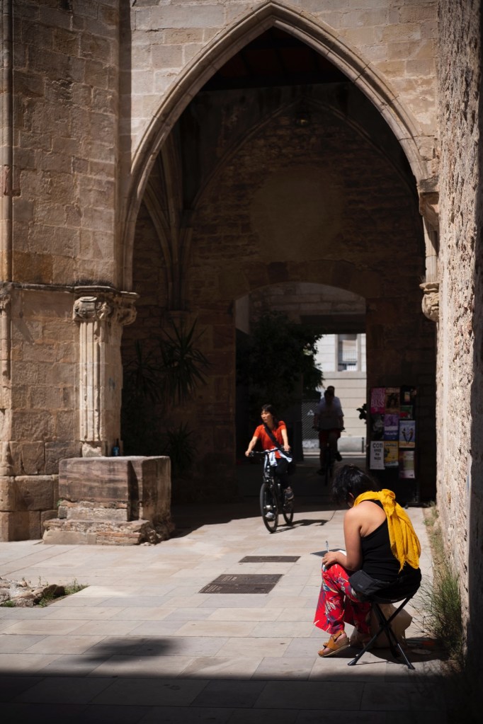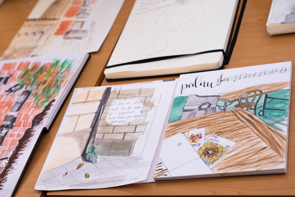 El evento tiene dos partes: una propuesta de ruta y un micro abierto. A todos se les proporciona un mapa de la zona con puntos de interés para que puedan ir a hacer sus dibujos y escritos durante varias horas. Después, nos reunimos todos en el espacio del Convent y, tras un breve exposición de los materiales, iniciamos la segunda parte del evento.